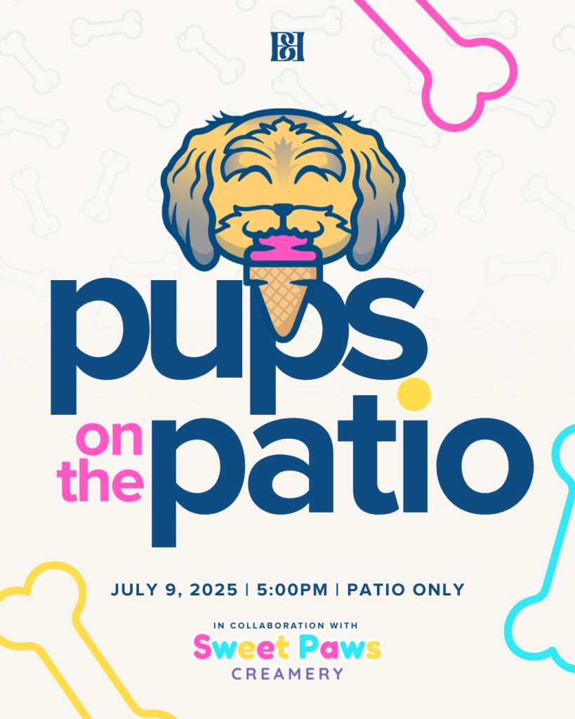 Join us for a tail-wagging good time at our Pups on the Patio Happy Hour! We’re partnering with Sweet Paws Creamery to treat your furry friends while you mix and mingle with fellow pet parents. Bring your pup, grab a drink, and enjoy a relaxed evening of community and canine joy on the patio!