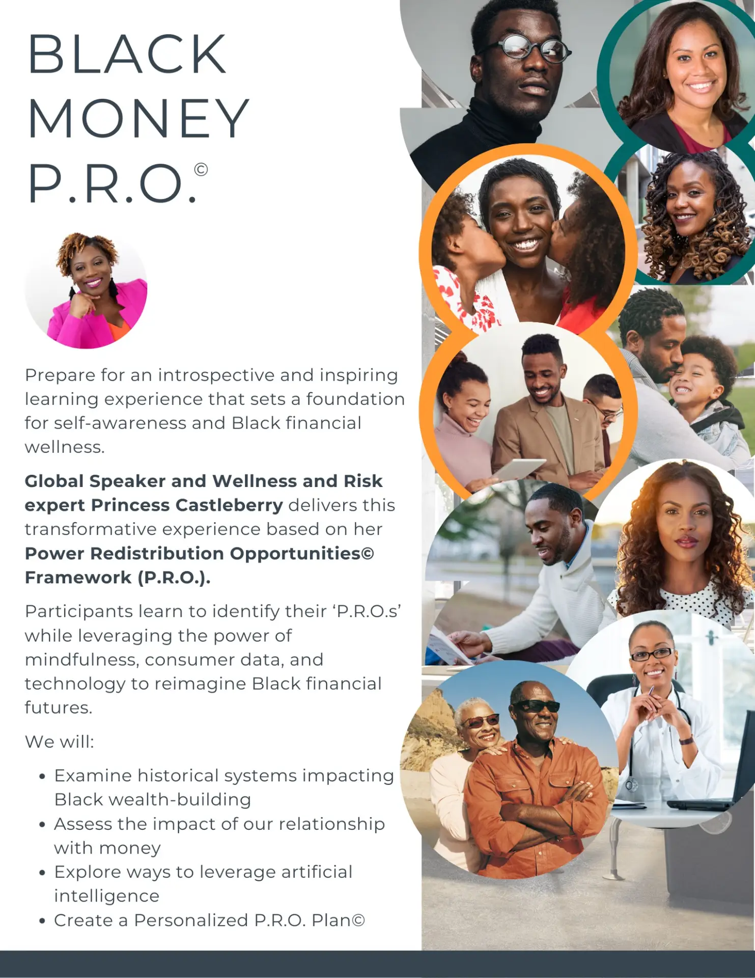 Participants learn to identify their ‘P.R.O.S’ while leveraging the power of mindfulness, consumer data, and technology to reimagine Black financial futures.