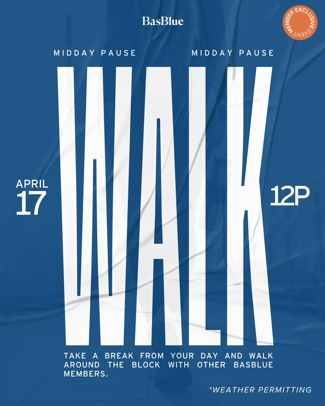 Step away for a midday pause and join us for a walk around the neighborhood. A moment to move your body, get some fresh air, and reconnect before stepping back into your day. |