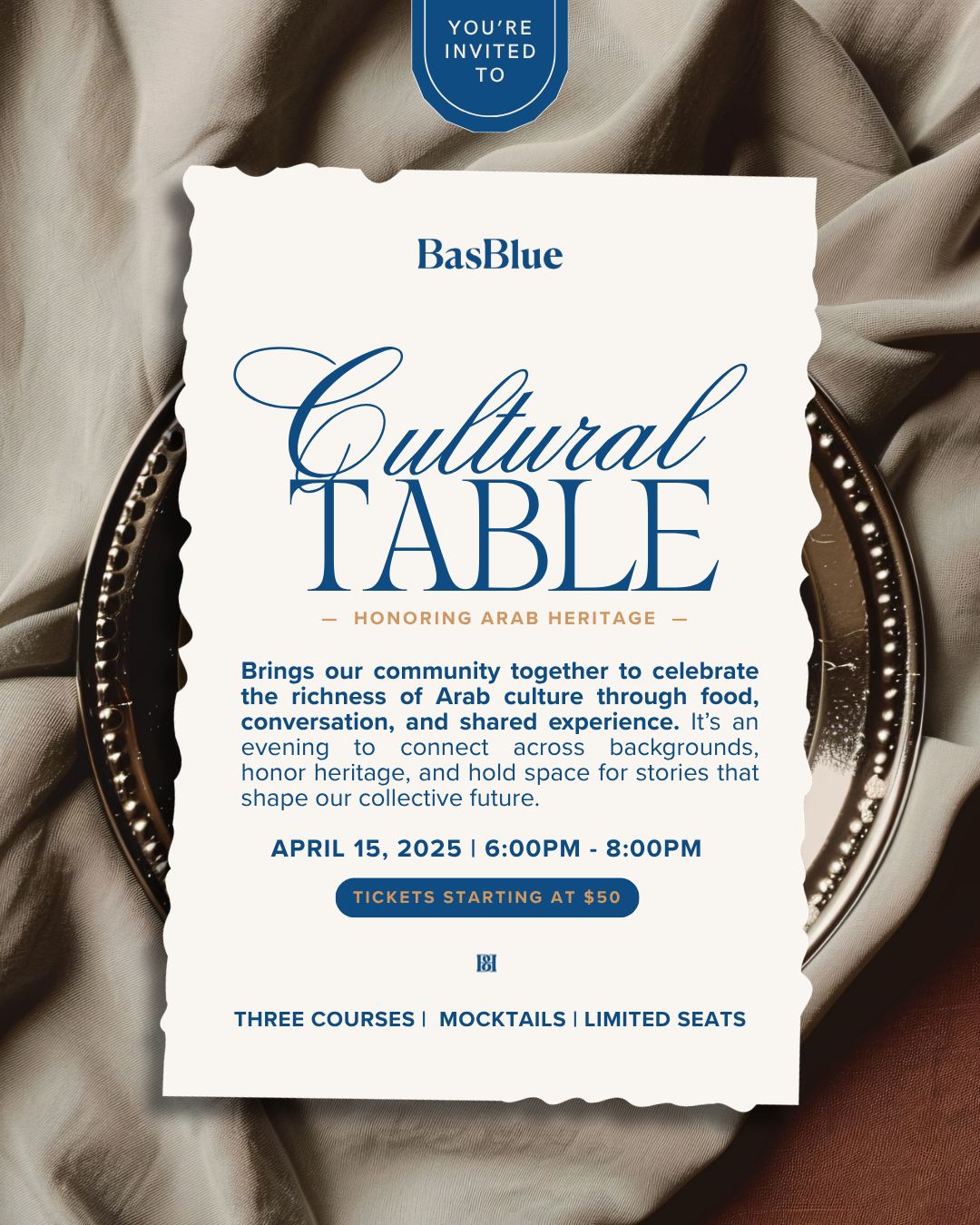 Join us for an intimate three-course dinner honoring Arab heritage through thoughtfully curated dishes and storytelling—an evening centered in culture, connection, and community. |